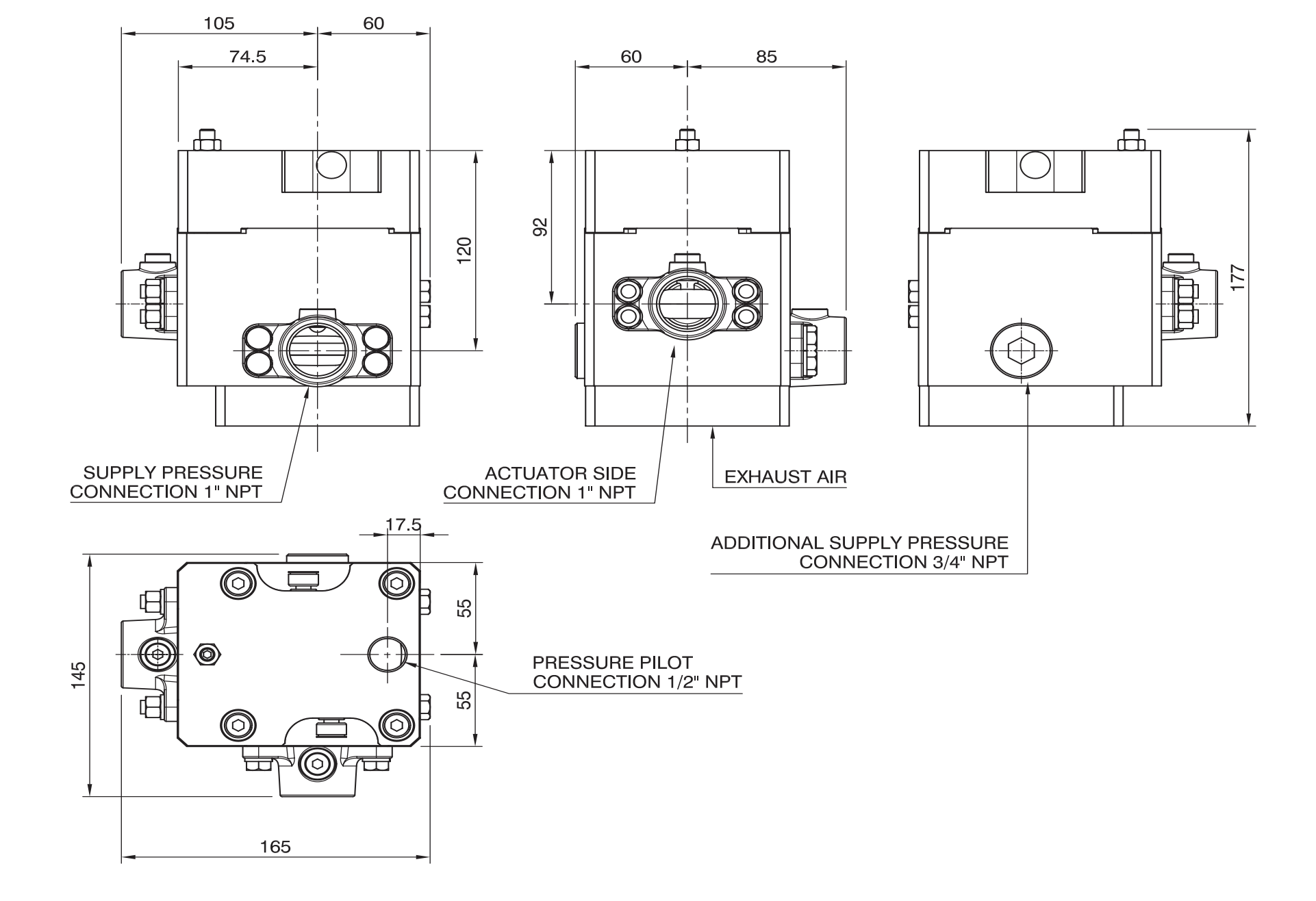 - 先导信号连接:1/2” NPT